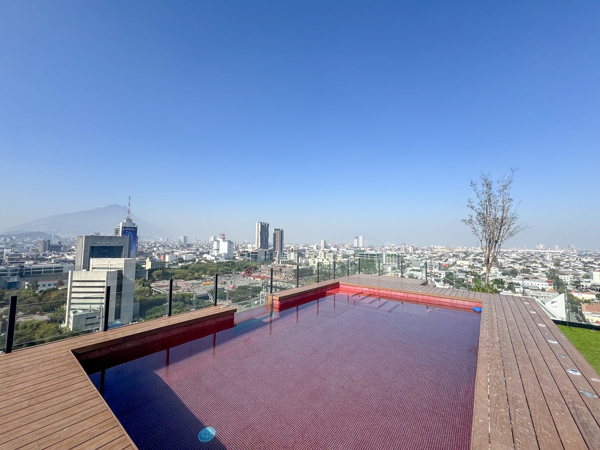 Descansa en un estudio con vista, cocineta y ubicación envidiable. Estás en el corazón de Monterrey, a pasos de la Macroplaza y Santa Lucía. Llega caminando a bares, cultura y parques. Ideal para escapadas urbanas, seguras y sin complicaciones.