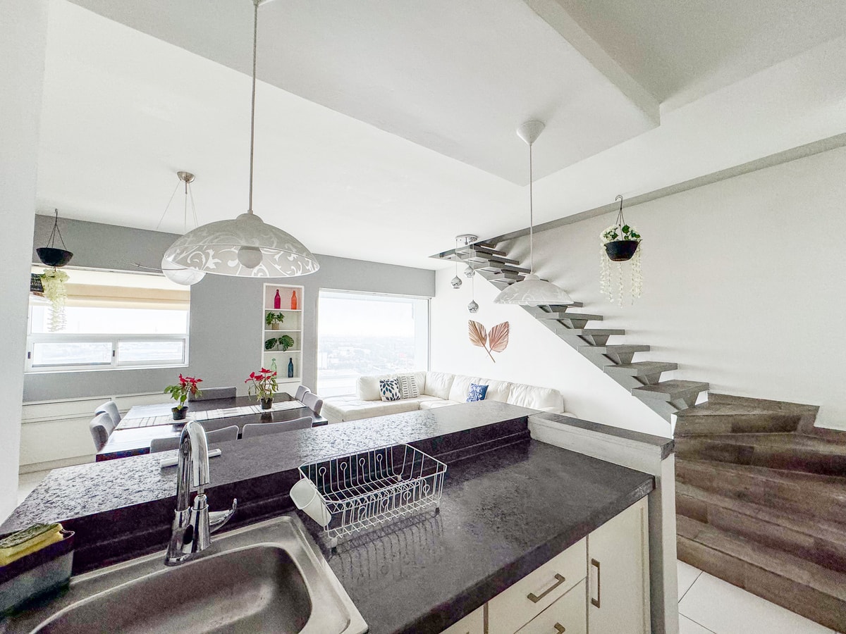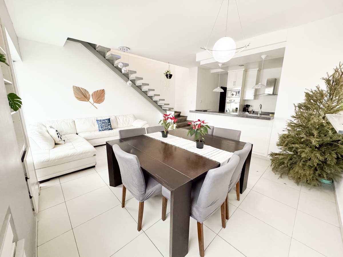 Exclusivo penthouse con terraza privada y asador. Tiene 2 recámaras: principal con cama king y secundaria con dos camas matrimoniales. Cocina equipada, comedor y sala con vistas impresionantes. Perfecto para familias, ejecutivos o escapadas especiales. Todo el confort y lujo en una ubicación estratégica.