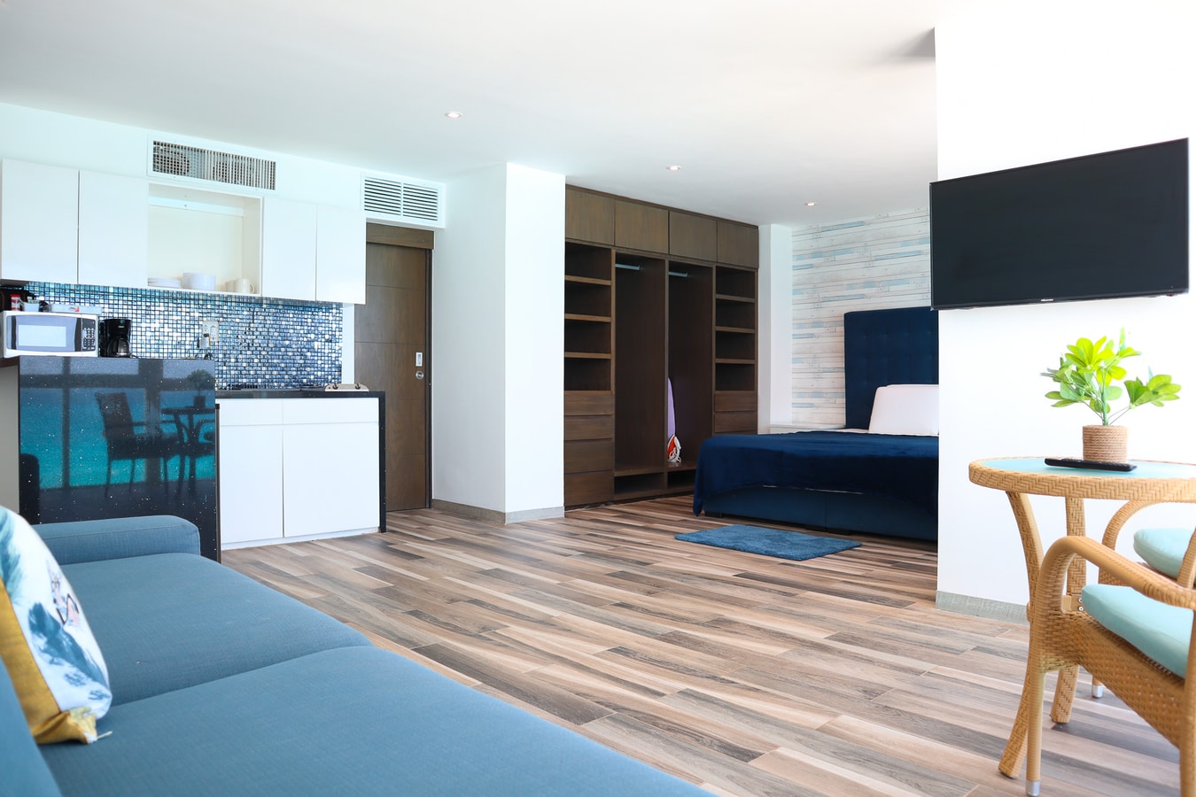 El departamento 3103 cuenta con una cama king y un sofá cama, además de cocina equipada, televisión, y aire acondicionado. Perfecto para parejas o pequeñas familias, ofrece un ambiente acogedor y todas las comodidades necesarias. Los huéspedes tienen acceso a las instalaciones del hotel, incluyendo alberca, jacuzzi, restaurantes, y spa.