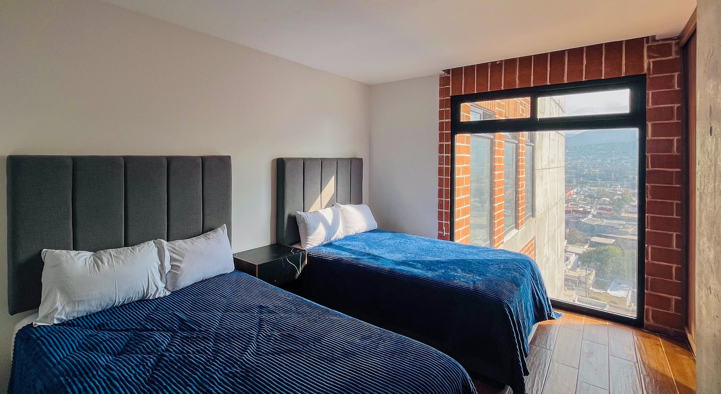 Es un estudio moderno pensado para tu comodidad. Cuenta con dos camas matrimoniales, baño privado, cocineta equipada y acceso por elevador. Su rooftop con alberca ofrece una experiencia única con vistas 360° de la ciudad. Ideal para viajeros que buscan ubicación, confort y una estancia con estilo.