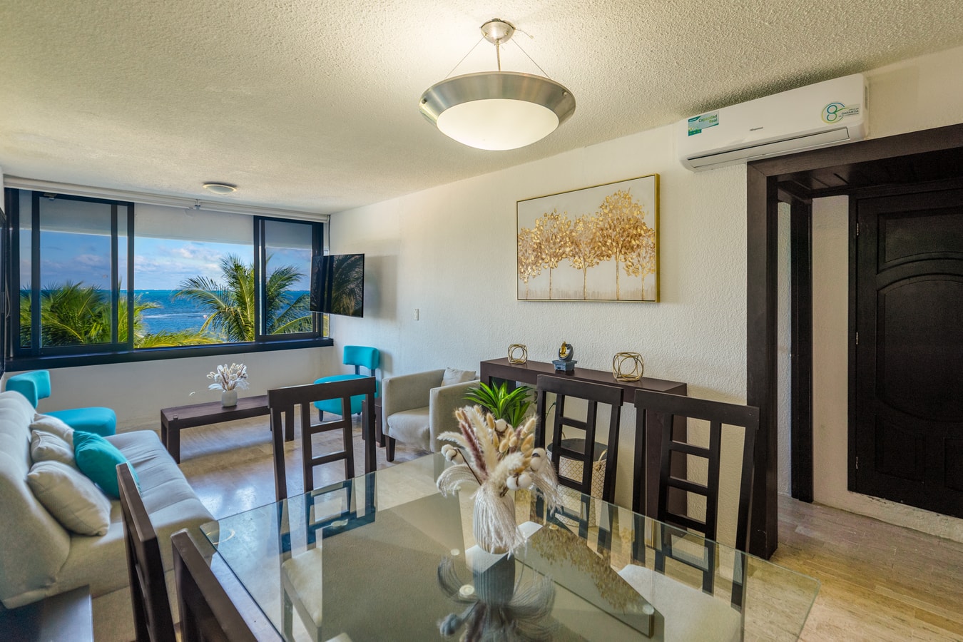 • Sala con vista al mar, comedor y cocina equipada